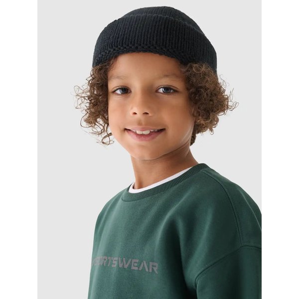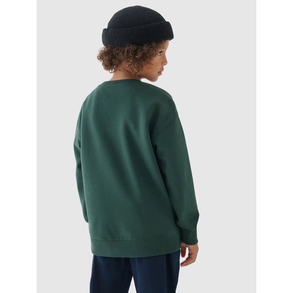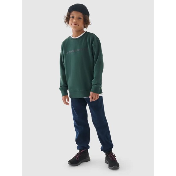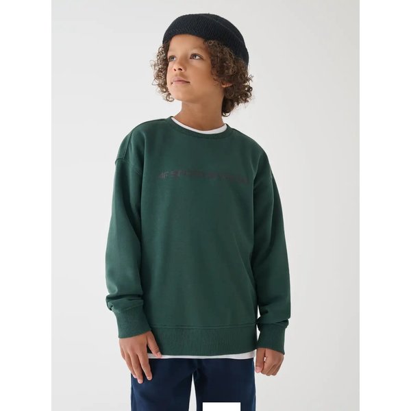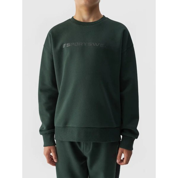 Bluza chłopięca od marki 4F to idealny wybór dla chłopców, którzy cenią wygodę i styl. Dzięki regularnemu krojowi, bluza doskonale dopasowuje się do sylwetki, zapewniając komfort w każdej sytuacji. Miękki splot single jersey z gładką powierzchnią gwarantuje elastyczność i przyjemność noszenia. Ściągacze przy mankietach i na dole bluzy utrzymują ją na miejscu, a okrągły dekolt dodaje prostoty i klasy. Napis "Sportswear" na przodzie dodaje sportowego charakteru, idealnego zarówno na co dzień, jak i na aktywności fizyczne. To niezastąpiony element w garderobie każdego młodego sportowca.