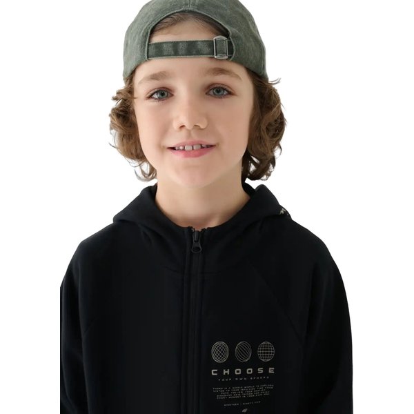Bluza chłopięca marki 4F to doskonały wybór na co dzień, łączący styl z funkcjonalnością. Luźny krój oversize zapewnia swobodę ruchów i komfort, a elastyczny materiał, dzięki połączeniu 80% bawełny i 20% poliestru, gwarantuje trwałość przez wiele sezonów. Czesane wnętrze dodatkowo ociepla, co czyni tę bluzę idealną na chłodniejsze dni. Zintegrowany kaptur i praktyczne kieszenie ułatwiają codzienne użytkowanie, a nadruk „Choose Your Own Sphere” dodaje charakteru. Zapinana na jednokierunkowy zamek, z elastycznymi mankietami i dołem ze ściągaczem, bluza oferuje wygodę i styl w jednym produkcie, idealnym dla młodych miłośników sportowego stylu.