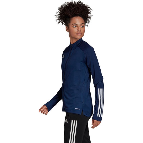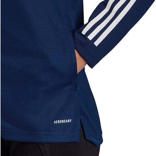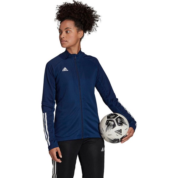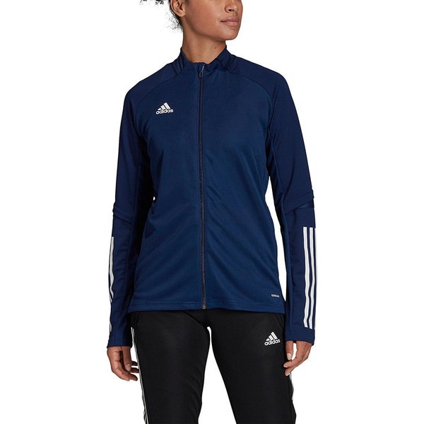 Bluza Condivo Training zaprojektowana została z myślą o kobietach trenujących głównie piłkę nożną. Adidas zadbała o to, by model posiadał zwężany dół oraz mankiety, które zapobiegają przedostawaniu się zimnego powietrza pod dół. Trening na świeżym powietrzu wymaga intensywnej rozgrzewki i jest z pewnością kłopotliwy, dlatego swobodny krój modelu nie będzie ograniczać Twoich ruchów.