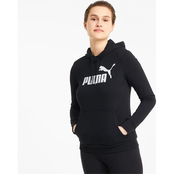 Klasyczna bluza wkładana przez głowę, Essentials Logo Hoodie marki Puma, świetnie sprawdzi się niemal do każdego outfitu. Wykonana częściowo z bawełny zapewni Ci poczucie ciepła, a zawarty w składzie poliester odpowiada za elastyczność bluzy. Dzięki przedniej kieszeni typu "kangur", możesz ogrzewać ręce lub nosić przy sobie małe i ważne drobiazgi.