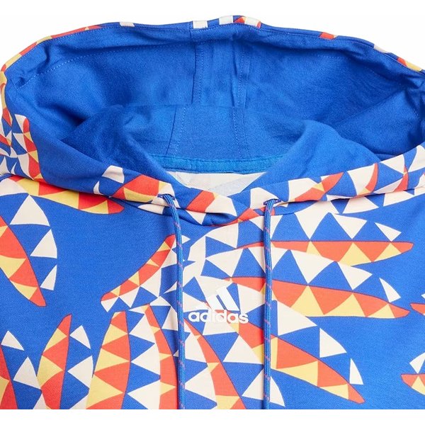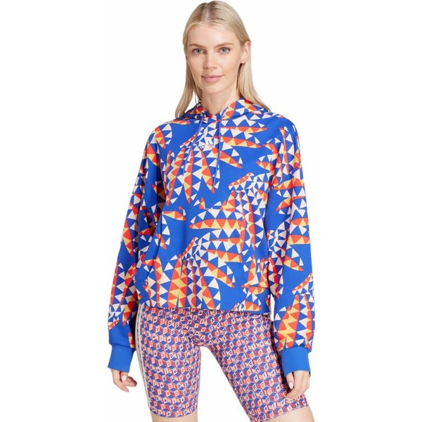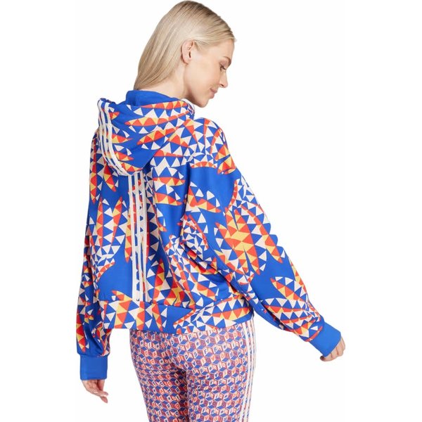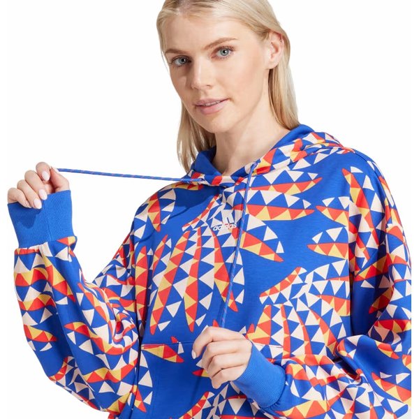 Bluza damska Farm Rio od Adidas to doskonały wybór dla kobiet ceniących wygodę i styl. Modne, kolorowe wzory inspirowane światłem słonecznym wyróżnią cię z tłumu, a luźny krój i obniżone ramiona zapewnią pełną swobodę ruchów. Praktyczny kaptur regulowany sznurkiem i kieszeń kangurka dodają funkcjonalności, idealnej na codzienne wyjścia. Zastosowanie materiałów pochodzących z recyklingu i odnawialnych wspiera ekologię, co sprawia, że bluza jest przyjazna dla środowiska. Ściągacze przy rękawach i dolnym brzegu oraz charakterystyczne trzy paski na plecach nadają całości nowoczesny, sportowy charakter.