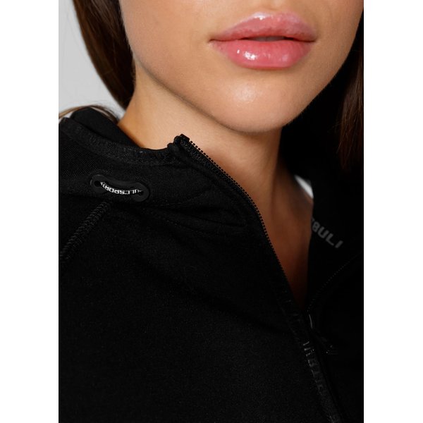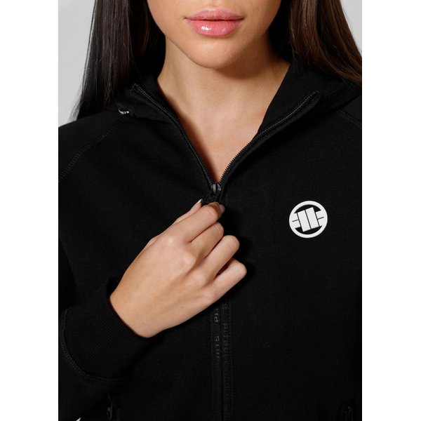 Bluza damska Pitbull West Coast łączy w sobie funkcjonalność i styl, idealnie dopasowując się do sylwetki, co podkreśla sportowy charakter użytkowniczki. Wykonana z wysokogatunkowej mieszanki bawełny z poliestrem, zapewnia trwałość i komfort noszenia, a elastyczna tkanina nie krępuje ruchów podczas aktywności fizycznej. Gładka wewnętrzna strona materiału chroni skórę przed podrażnieniami, a otwory wentylacyjne pod pachami skutecznie odprowadzają wilgoć. Praktyczne kieszenie zamykane na zamki, w tym kieszeń na rękawie, oferują wygodne przechowywanie. Solidne ściągacze i regulowany kaptur z gumo-sznurkiem podnoszą funkcjonalność bluzy.