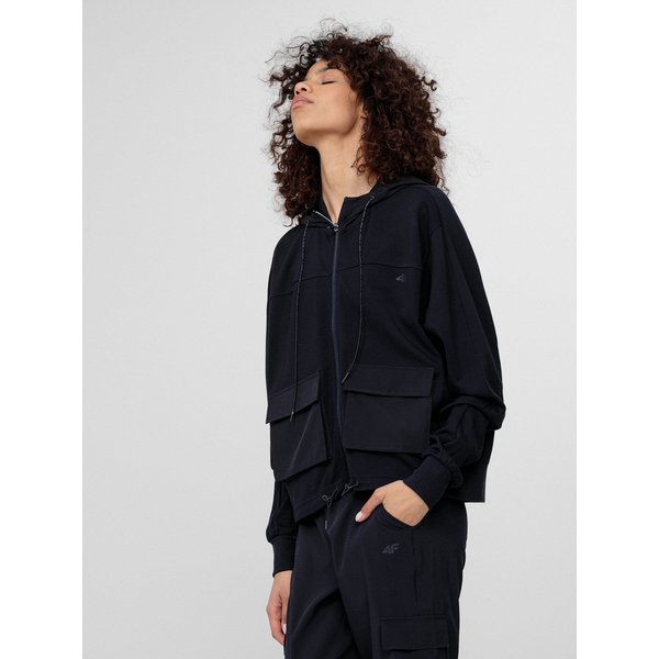 Bluza damska H4L22 BLD021 4F to rozpinany model, który wykorzystasz podczas aktywności fizycznej.