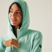Damska bluza Huntdale od Regatta to idealny wybór dla aktywnych kobiet ceniących komfort i styl. Wykonana z oddychającego materiału z domieszką elastanu, gwarantuje swobodę ruchów i doskonałe dopasowanie. Lekka tkanina o gramaturze 155 gsm zapewnia optymalną termoregulację, a faktura siateczki wspomaga cyrkulację powietrza. Pełny zamek błyskawiczny i praktyczny kaptur oferują ochronę przed wiatrem, natomiast elastyczne mankiety i dół zapobiegają przesuwaniu się bluzy. Dodatkowe kieszenie boczne umożliwiają przechowywanie drobiazgów, a logo marki i naszywka dodają stylowego wyrazu.