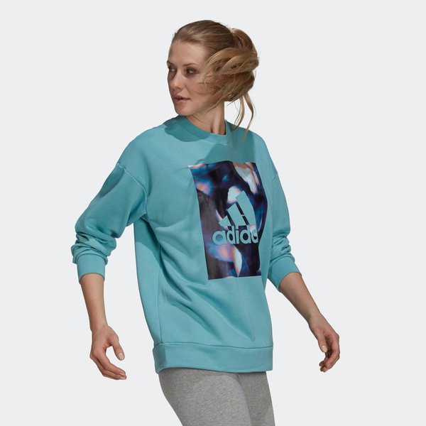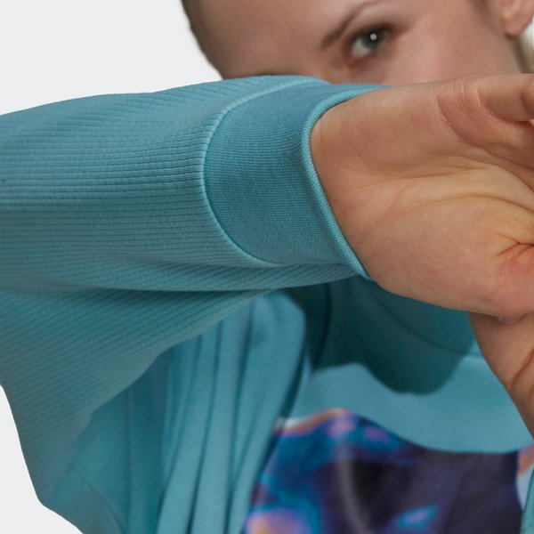 Standardowy krój nie krępuje Twoich ruchów, a zakończone rękawami mankiety pozwalają pozostać bluzie w najlepszej pozycji, jak również współtworzą jej unikalny wygląd. Grafika Adidas sprawi, że będziesz wyróżniała się w tłumie, gdziekolwiek się znajdujesz. Bluza jest delikatna w dotyku i wykonana została ze świetnych materiałów, które pochodzą z recyklingu.