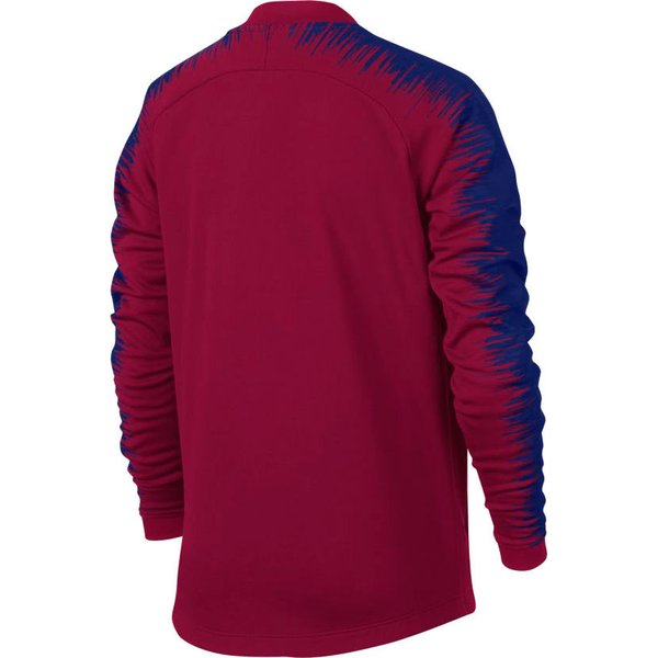 Ozdobiona emblematami klubu bluza sprawia, że jej właściciel poczuje się niczym zawodnik Barcelony na chwilę przed wejściem na murawę. Bluza dzięki zastosowaniu systemu Dri-FIT ma właściwości odprowadzające pot, idealnie sprawdzi się więc podczas piłkarskiego treningu w chłodniejszy dzień. Pełną swobodę ruchów młodemu piłkarzowi zapewnią ergonomiczne szwy, natomiast zamek na całej długości ułatwia zakładanie. Materiał wykonania to trwały poliester, który jest odporny na wszelkiego rodzaju uszkodzenia mechaniczne i zachowa swój estetyczny wygląd na długi czas.