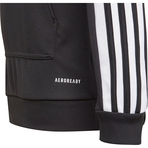 Tkanina o podwójnym splocie z technologią AEROREADY sprawia, że materiał odprowadza wilgoć i pot z powierzchni skóry. Standardowy fason wspiera nieograniczoną swobodę ruchów, a odpowiednią osłonę zapewni Ci kaptur oraz ściągacze utrzymujące odzież na swoim miejscu. Kultowy styl Adidas podkreśla logo Badge of Sport oraz kontrastowe paski na rękawach.