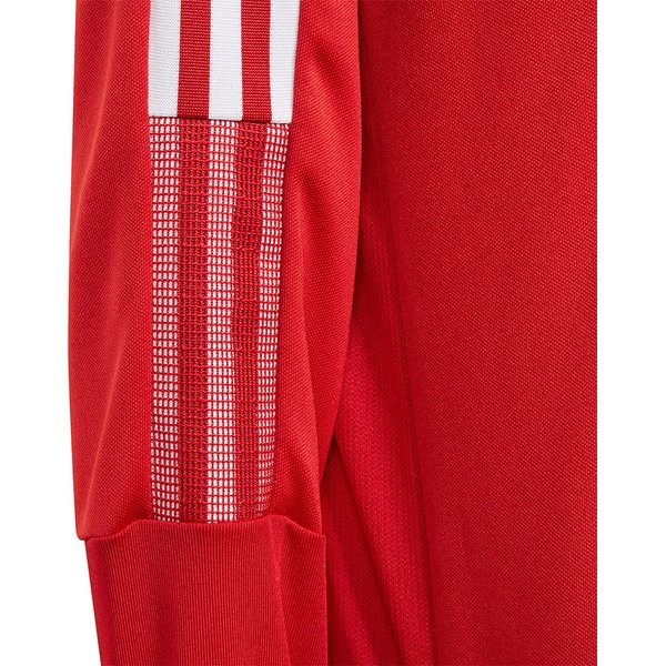 Bluza to model treningowy, przeznaczony dla młodych zawodników uprawiających piłkę nożną. Jest lekka i do tego bardzo wytrzymała. Przy okazji w żaden sposób nie ogranicza ruchów, co wpływa na komfort i koncentrację podczas treningu, gdyż nic nie uwiera i nie przeszkadza. Posiada suwak na 1/3 długości, co znacznie ułatwia zakładanie i zdejmowanie bluzy. W mankietach znajdują się specjalne wycięcia na kciuki, które pozwalają ochronić dłonie przed chłodem, a przy okazji rękawy nie ściągają się i nie ograniczają ruchów. Bluza wyposażona została w technologię Aeroready, dzięki której doskonale odprowadza wilgoć, utrzymuje suchość i wspiera chłodzenie organizmu, czyli posiada wszystko, czego tylko możesz potrzebować na treningach. Dodatkowo produkt został wykonany z Primegreen, czyli linii wysokiej jakości materiałów z recyklingu, co ma bardzo pozytywny wpływ na nasze środowisko.