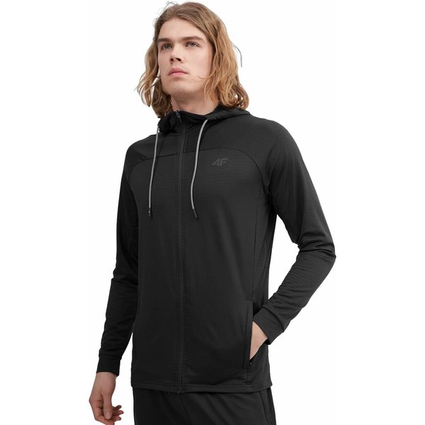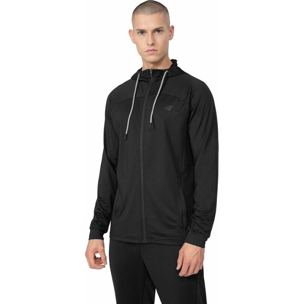 Ta bluza treningowa rozpinana z kapturem męska została specjalnie uszyta z myślą o Twoim maksymalnym komforcie podczas aktywności fizycznej. Dzięki elastycznej i lekko ocieplanej dzianinie oraz szybkoschnącej technologii 4FDry, będziesz czuł się wygodnie i suchy podczas treningu. Raglanowa konstrukcja rękawów umożliwia swobodę ruchów, a jednokierunkowy zamek z blokadą suwaka i zintegrowany kaptur z regulacją na troki zapewniają dodatkową ochronę przed wiatrem i deszczem. Bluza posiada także dwie boczne kieszenie z zapięciem na zamek, co umożliwia bezpieczne przechowywanie drobiazgów podczas treningu. To idealny wybór dla każdego, kto ceni sobie wygodę i funkcjonalność w stroju treningowym.