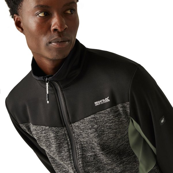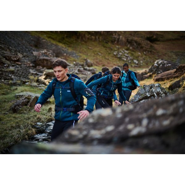 Coladane VI Regatta to stylowa i trwała bluza, idealna na wędrówki. Wykonana z marmurkowej tkaniny i kontrastujących paneli, nadaje modnego wyglądu. Dzięki rozciągliwości Extol zapewnia swobodę ruchów. Zamek błyskawiczny na całej długości ułatwia zakładanie bluzy, a wysoki kołnierz gwarantuje ochronę przed chłodem. Dodatkowo, bluza posiada dwie kieszenie boczne na zamek oraz elastyczne mankiety. Logo marki znajduje się na piersi, dodając charakteru.