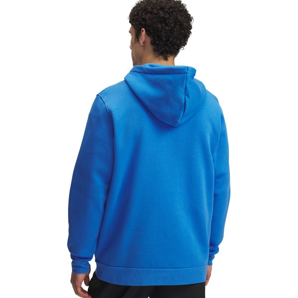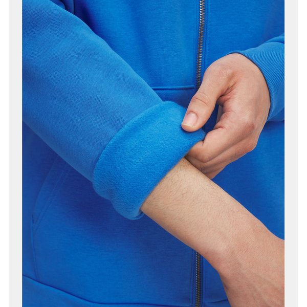 Bluza męska Essential Fleece FZ Hood Under Armour to miękka i przyjemna w dotyku bluza z kapturem. Materiał przepuszcza powietrze, co gwarantuje skórze swobodne oddychanie. Wewnętrzna strona bluzy wykonana jest z ultramiękkiego polaru, który zapewnia ciepło w chłodne dni. Bluza jest wytrzymała i dobrze dopasowuje się do sylwetki, nie ograniczając przy tym ruchów. Kaptur można regulować, a suwak na całej długości ułatwia zakładanie i zdejmowanie bluzy. Przednia część bluzy posiada dwie kieszenie, które można wykorzystać do ogrzania dłoni lub przechowywania drobnych przedmiotów. Bluza jest ozdobiona haftowanym logotypem marki.