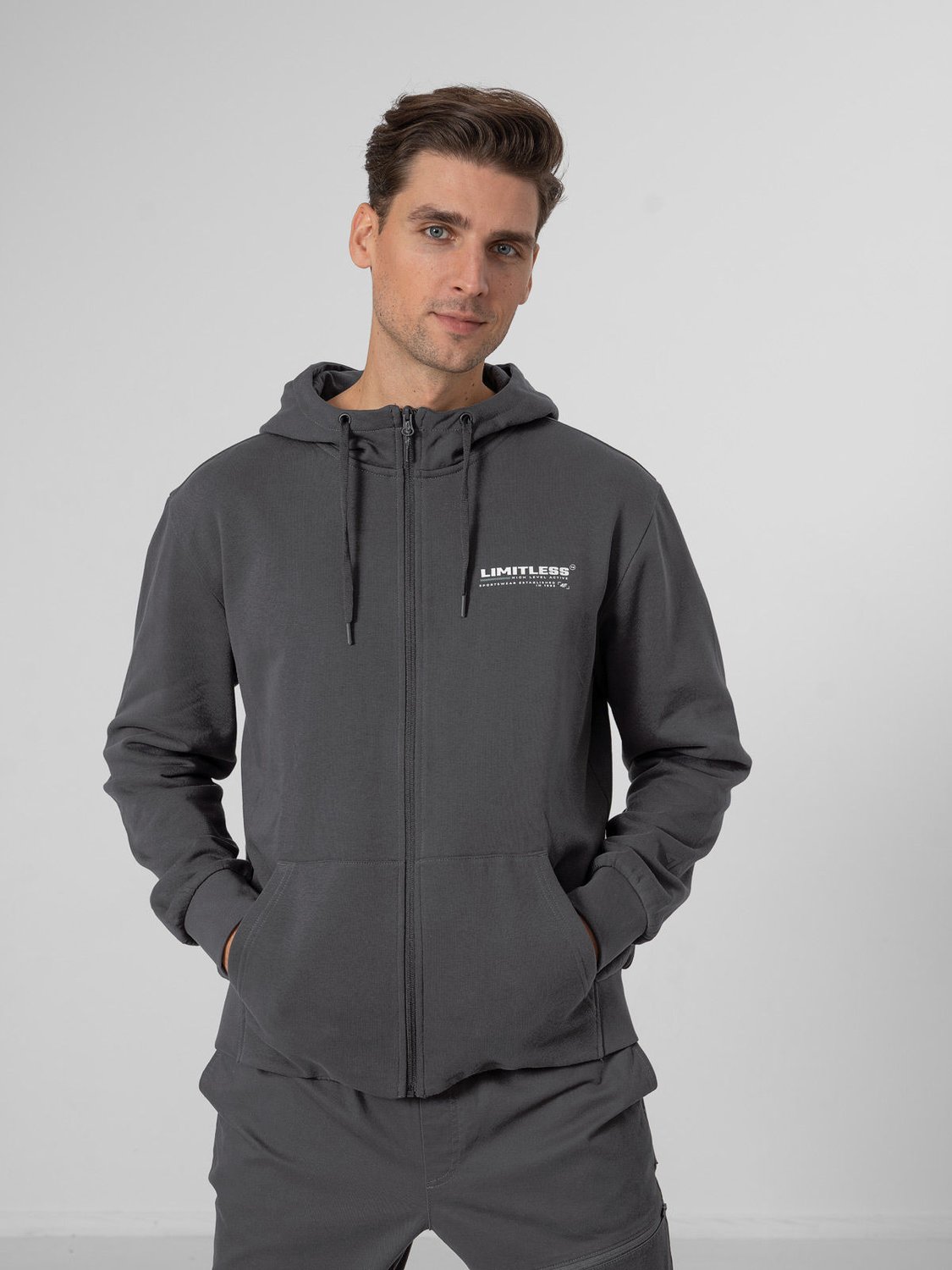 Bluza jest rozpinana i ma kaptur, dlatego spodoba się każdej aktywnej osobie. Regularny krój sprawia, że bluza dobrze układa się na ciele. Materiał jest miły w dotyku i oddychający, co wynika z wysokiej zawartości bawełny. Mankiety zostały zakończone elastycznym ściągaczem, dzięki którym mroźny wiatr nie dostaje się do środka.