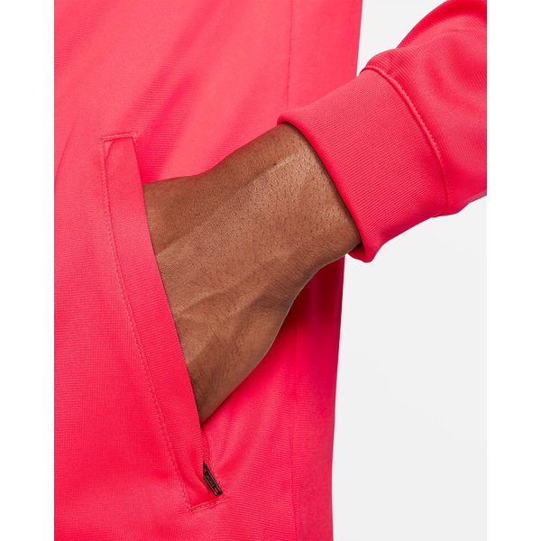 Bluza doskonale sprawdzi się podczas treningu, ale również spełni swoje zadanie podczas codziennych obowiązków. Posiada dopasowany krój, dzięki czemu bardzo dobrze się układa i zapewnia swobodę ruchów. Komfort noszenia poprawia również technologia Dri-FIT, która skutecznie odprowadza wilgoć na zewnątrz. Bluza jest miękka i elastyczna, a także posiada zamek na całej długości. Wyposażona jest również w przednie kieszenie oraz w kaptur, który jest regulowany sznurkiem. Sportowe detale inspirowane są klubem FC Liverpool, więc jest to doskonały model dla wszystkich fanów angielskiej drużyny.