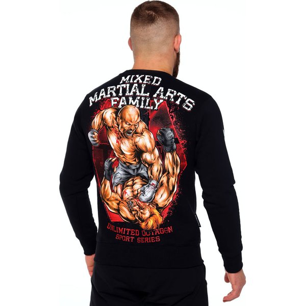 Bluza męska MMA Family Octagon to idealny wybór dla mężczyzn ceniących komfort i styl. Wykonana z wysokiej jakości mieszanki bawełny i poliestru, zapewnia doskonałe dopasowanie do każdej sylwetki, co pozwala na podkreślenie atutów figury. Dzięki wszytym gumowym elastomerom gwarantuje wygodę i swobodę ruchów przez cały dzień. Bluza charakteryzuje się wyprofilowanym krojem oraz okrągłym dekoltem, co dodaje jej nowoczesnego wyglądu. Solidna gramatura materiału 420 gsm gwarantuje trwałość i odporność na codzienne użytkowanie. Dodatkowe detale, takie jak nadruki z przodu i z tyłu oraz metka na rękawie, dopełniają całość, nadając bluzie unikalny charakter.