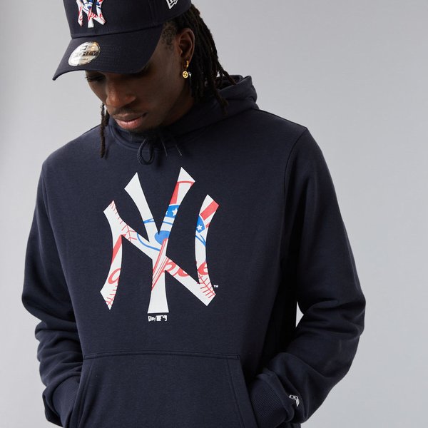 Bluza męska New York Yankees New Era to produkt zapewniający komfort w każdej sytuacji. Wszystko dzięki wysokiej jakości wykonania oraz niebanalnemu stylowi. Do wykonania tego modelu wykorzystano materiał składający się w 80% z bawełny oraz w 20% z poliestru. Z przodu bluzy znajduje się pojemna kieszeń typu kangur. Bluza ma granatowy kolor, a przód został ozdobiony dużym logotypem drużyny New York Yankees.