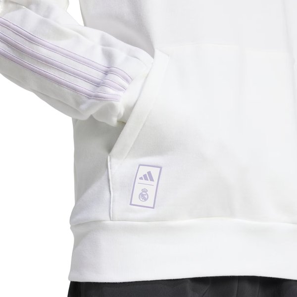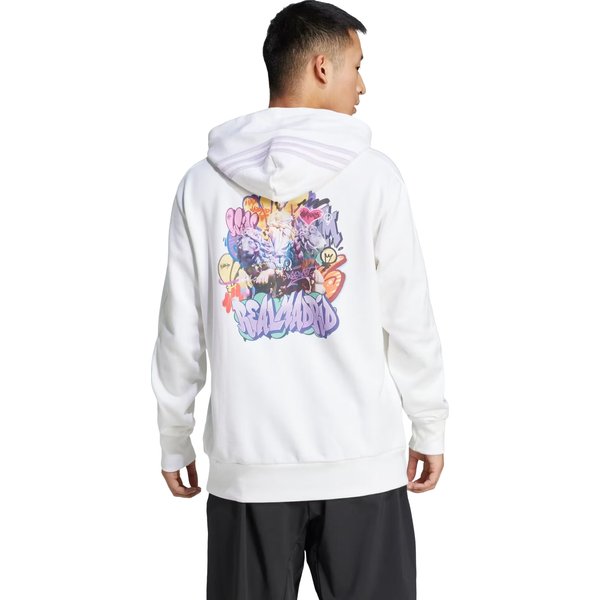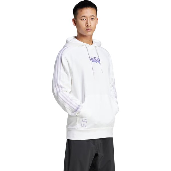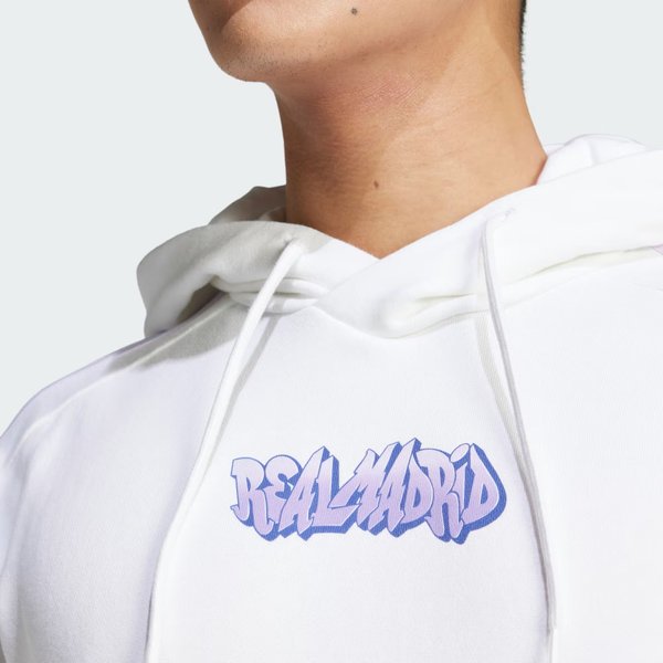 Bluza męska Real Madrid Adidas to doskonały wybór dla prawdziwych fanów klubu, którzy cenią sobie wygodę i unikalny styl. Wykonana z miękkiej, wysokiej jakości bawełny, zapewnia komfort noszenia przez cały dzień. Bluza wyróżnia się śmiałą grafiką na plecach, inspirowaną pracami artystów PichiAvo, co pozwala wyrazić swoją pasję do piłki nożnej i wsparcie dla Realu Madryt. Dzięki kieszeni typu kangurka, możesz wygodnie przechowywać drobiazgi, a kaptur z regulowanymi sznurkami zapewnia dodatkową ochronę przed wiatrem. Dół i mankiety wykończone ściągaczami gwarantują idealne dopasowanie, czyniąc z tej bluzy stylowy element codziennej garderoby.