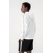 Lekka bawełniana dzianina jest przyjemna w dotyku, delikatnie otula ciało. Przewiewna tkanina pozwala skórze oddychać. Domieszka poliestru poprawia sprężystość materiału i znacznie polepsza trwałość ubrania. Dzięki temu bluza na długo zagości w Twojej garderobie i zachowa swoją wyjątkową jakość. Standardowy, nieco luźny krój dopasowuje się do sylwetki dzięki ściągaczom przy mankietom oraz na dole bluzy, współpracuje z nią i pozwala zachować całkowitą swobodę ruchu. Zintegrowany kaptur stanowi dodatkową ochronę przed zimnem i lekkim deszczem, dzięki regulacji możesz go dopasować tak by był wygodny i nie spadał. Drobiazgi możesz schować w przedniej kieszeni typu kangur. Model został ozdobiony lamówką nawiązującą do marki na całej długości rękawów. Bluza podkreśli każdą codzienną stylizację.