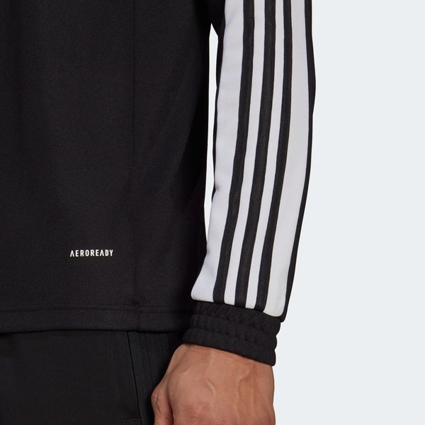 Tkanina o podwójnym splocie w połączeniu z technologią AEROREADY zapewnia odprowadzanie potu z powierzchni skóry oraz właściwości szybkoschnące. Krótki suwak z ochroną podbródka poprawia właściwości wentylacyjne. Stójka oraz ściągacze przy mankietach podnoszą funkcjonalność bluzy. Kultowy styl Adidas podkreśla logo Badge of Sport oraz kontrastowe paski na ramionach.