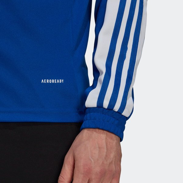 Tkanina o podwójnym splocie w połączeniu z technologią AEROREADY zapewnia odprowadzanie potu z powierzchni skóry oraz właściwości szybkoschnące. Krótki suwak z ochroną podbródka poprawia właściwości wentylacyjne. Stójka oraz ściągacze przy mankietach podnoszą funkcjonalność bluzy. Kultowy styl Adidas podkreśla logo Badge of Sport oraz kontrastowe paski na ramionach.