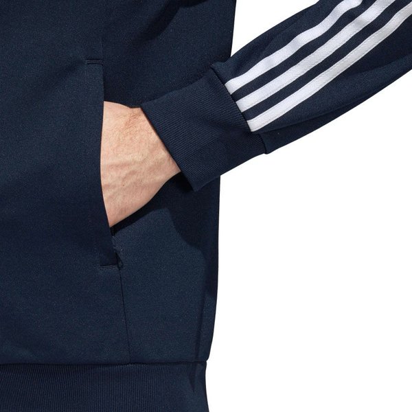 Bluza męska SST marki Adidas Originals, wykonana została w stylu retro. Posiada kontrastową lamówkę oraz trzy paski które wyróżniają markę spośród innych. Całość uzupełniona jest logiem Trefoil wyszytym na klatce piersiowej. Wyposażona jest w dwie boczne kieszenie na suwaki w których Twoje rzeczy będą bezpieczne. Bluza posiada standardowy krój dzięki czemu dopasuje się do każdej sylwetki.