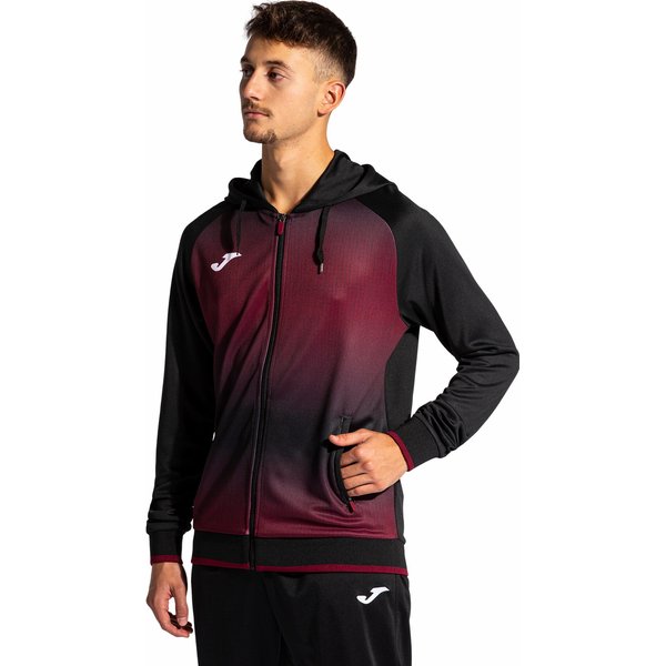 Bluza męska Tiger V Zip-Up Hoodie Joma to idealna propozycja dla aktywnych mężczyzn. Dzięki zapięciu na całej długości i regulowanemu kapturowi zapewnia komfort i ciepło podczas treningów czy meczów w chłodniejsze dni. Elastyczne mankiety i ściągacz u dołu gwarantują wygodne dopasowanie i ochronę przed zimnem. Dodatkowo, dwie przednie kieszenie umożliwiają przechowywanie drobnych przedmiotów. Bluza wykonana z komfortowego materiału, zapewniającego swobodę ruchów. Charakterystyczny gradientowy wzór na przedniej części nadaje jej nowoczesnego wyglądu. Logo marki Joma na lewej piersi dodaje bluzie modnego wykończenia.