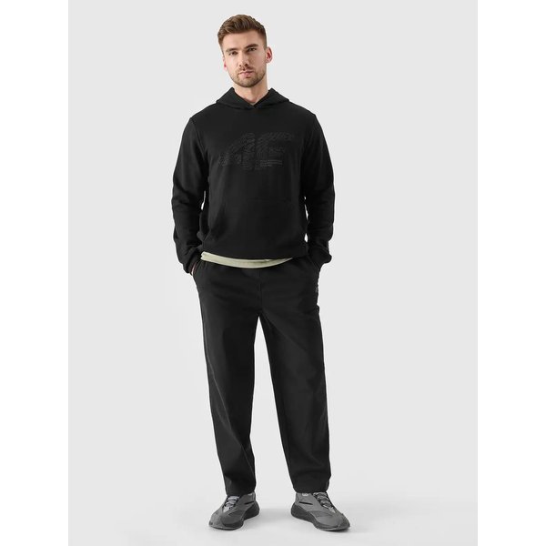 Bluza męska marki 4F oferuje wyjątkowy komfort dzięki zastosowaniu dzianiny french terry oraz 100% bawełny, co sprawia, że jest idealnym wyborem na chłodniejsze dni. Zintegrowany kaptur oraz kieszeń typu kangurka zapewniają dodatkową ochronę przed zimnem i wygodę użytkowania. Luźny krój umożliwia swobodę ruchów, a jednolity materiał z nadrukiem dodaje stylowego charakteru. Ściągacze na mankietach i dole bluzy utrzymują ciepło, jednocześnie nadając jej nowoczesny wygląd. Dzięki temu produktowi zyskujesz nie tylko praktyczność, ale i modny element garderoby, który doskonale wpisuje się w casualowy styl.