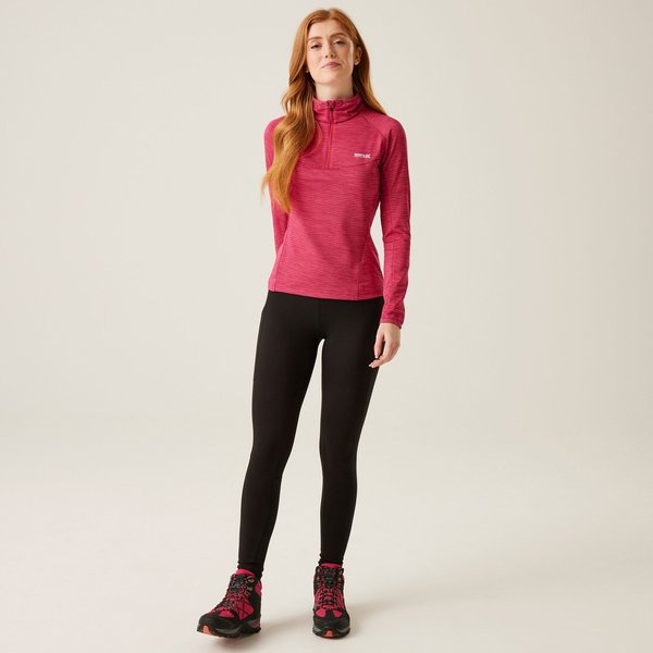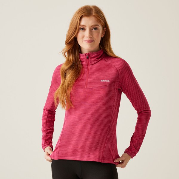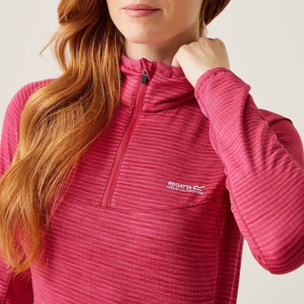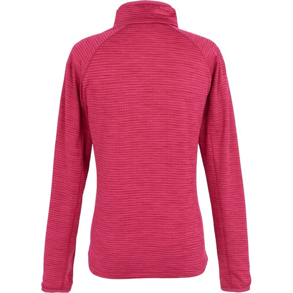 Bluza polarowa damska Yonder II zapewnia wyjątkowy komfort i wszechstronność podczas każdej aktywności na świeżym powietrzu. Wykonana z trwałego poliestru i elastycznego polaru, doskonale utrzymuje ciepło, jednocześnie efektywnie odprowadzając wilgoć. Jej dopasowany krój i raglanowe rękawy gwarantują swobodę ruchów, a delikatny wzór w prążki dodaje stylu. Długi rękaw i stójka oferują dodatkową ochronę przed chłodem. Wygodny zamek błyskawiczny przy kołnierzu ułatwia ubieranie i zdejmowanie, a subtelne logo na lewej piersi podkreśla markę. To idealny wybór na zimne dni.