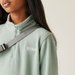 Bluza wykonana została z wysokiej jakości materiałów, dzięki czemu jest trwała i wytrzymała. Zawartość poliestru zapewnia dokładne dopasowanie i pełna swobodę ruchów użytkownika. Dodatkowo materiał jest odporny na mechacenie, co znacznie przedłuża żywotność modelu. Wysoki kołnierz skutecznie ochroni szyję przed wiatrem i chłodem. Krótki suwak ułatwia szybkie zakładanie i zdejmowanie bluzy. Ponadto model posiada właściwości szybkoschnące, co daje duży komfort podczas użytkowania.