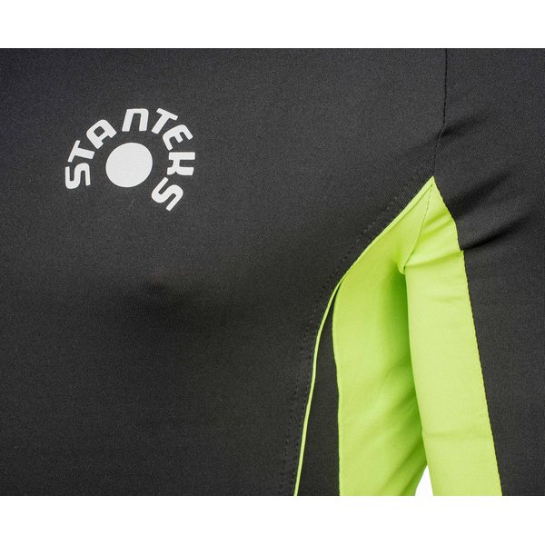 Klasyczna i wygodna męska koszulka rowerowa SR0031 marki Stanteks. Wykonana z oddychającego poliestru z domieszką elastanu, który jest delikatny dla skóry, elastyczny i świetnie odprowadza wilgoć na zewnątrz. Koszulka rozpinana na suwak o długości 30cm, zabezpieczony pod brodą. Odblaskowe elementy z przodu i na tylniej kieszeni dla lepszej widoczności po zmroku.