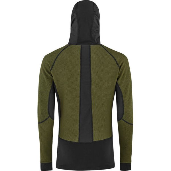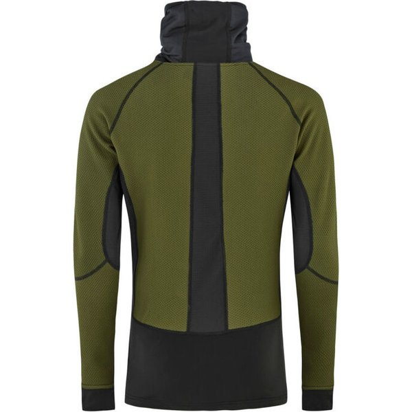 Bluza wykonana została z wytrzymałego i elastycznego materiału. Posiada dopasowany krój i jest rozciągliwa w czterech kierunkach, dzięki czemu zapewnia pełną swobodę ruchów. Bluza posiada właściwości szybkoschnące oraz oddychające, co zapewnia wysoki komfort użytkowania. Model ten skutecznie odprowadza wilgoć na zewnątrz, a obszary wentylacyjne pod pachami, na plecach i na szyi zapewniają odpowiednią cyrkulację powietrza i świeżość podczas aktywności. Rękawy wykończone zostały specjalnymi otworami na kciuk, co zapewnia jeszcze większą mobilność. Model ten wyposażony został w zintegrowany kaptur, który zapewnia jeszcze lepsze dopasowanie i świetnie sprawdzi się pod kask. Można go również zastosować jako komin, zapewniając lepszą ochronę szyi. Bluza zapewni komfort termiczny i skutecznie ochroni przed zimnem. Jest to praktyczny i bardzo komfortowy model, doskonały podczas wszelkich zimowych aktywności i wędrówek.