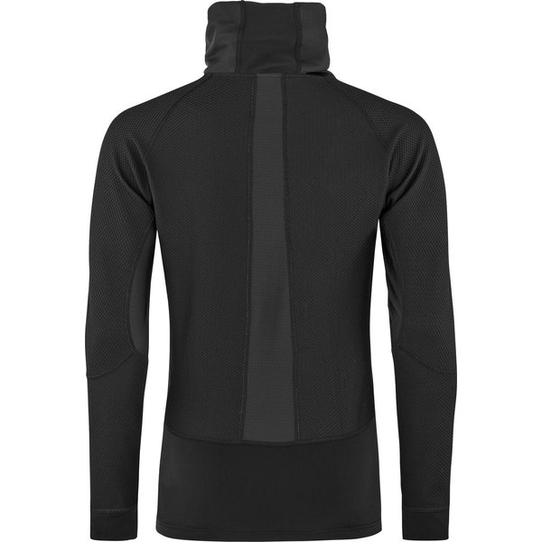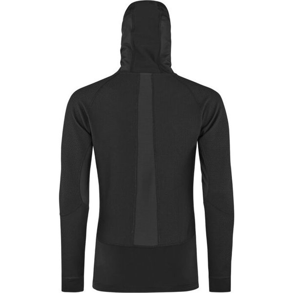 Bluza wykonana została z wytrzymałego i elastycznego materiału. Posiada dopasowany krój i jest rozciągliwa w czterech kierunkach, dzięki czemu zapewnia pełną swobodę ruchów. Bluza posiada właściwości szybkoschnące oraz oddychające, co zapewnia wysoki komfort użytkowania. Model ten skutecznie odprowadza wilgoć na zewnątrz, a obszary wentylacyjne pod pachami, na plecach i na szyi zapewniają odpowiednią cyrkulację powietrza i świeżość podczas aktywności. Rękawy wykończone zostały specjalnymi otworami na kciuk, co zapewnia jeszcze większą mobilność. Model ten wyposażony został w zintegrowany kaptur, który zapewnia jeszcze lepsze dopasowanie i świetnie sprawdzi się pod kask. Można go również zastosować jako komin, zapewniając lepszą ochronę szyi. Bluza zapewni komfort termiczny i skutecznie ochroni przed zimnem. Jest to praktyczny i bardzo komfortowy model, doskonały podczas wszelkich zimowych aktywności i wędrówek.