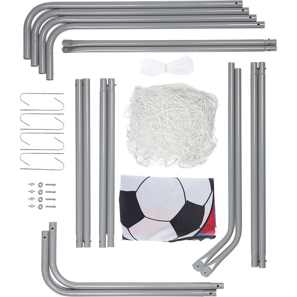 W komplecie znajdują się również kotwy mocujące oraz sznurek, które pozwalają przymocować bramkę do nierównego podłoża lub murawy w wietrzne dni.