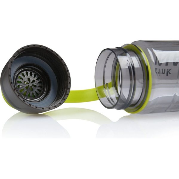 Wykonana została z trwałego tworzywa, które zapewni maksymalną ochronę przez zarysowaniami, czy innymi uszkodzeniami mechanicznymi. Nie będziesz musiał się obawiać o jej zniszczenie - przez długi czas pozostanie w stanie idealnym. Posiada szczelne zamknięcie, które nie pozwoli na przeciekanie, dlatego będziesz mógł zawsze być spokojny o wszystkie swoje rzeczy dookoła. Jej pojemność wynosi, aż 1000 ml, a wymiary pozwolą na schowanie jej w każdej torbie, czy plecaku. Wygodny uchwyt pozwoli na komfortowe noszenie butelki, a łatwy i szybki demontaż zapewni bezproblemowe czyszczenie każdego elementu.