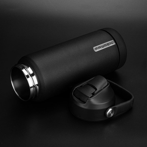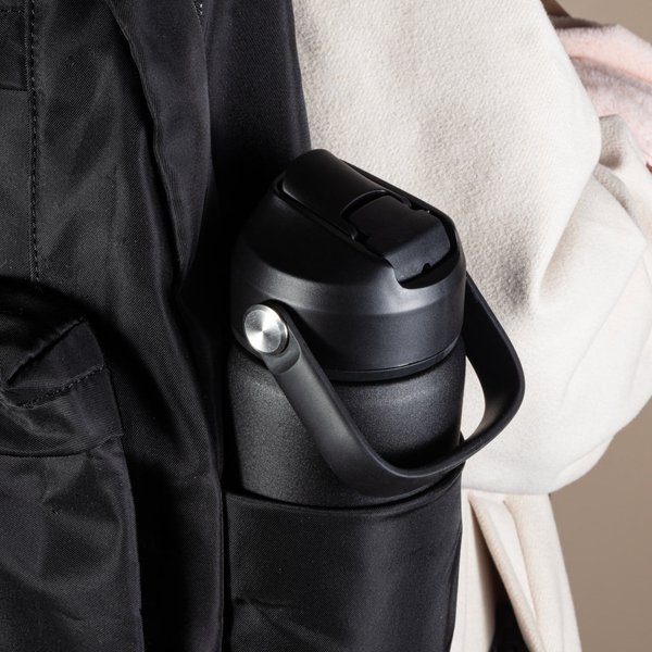 Butelka prezentuje się niezwykle elegancko dzięki swojemu głębokiemu odcieniu - czerni. Malowana proszkowo stal nierdzewna nie tylko nadaje estetycznego wyglądu, ale także zapewnia trwałą ochronę. Cicha i stabilna podstawa butelki z łatwo zdejmowaną silikonową podstawką zapewnia stabilność i chroni przed przesuwaniem się po różnych powierzchniach. Dzięki temu możesz postawić butelkę bez obaw o hałas czy przewrócenie się na bok.