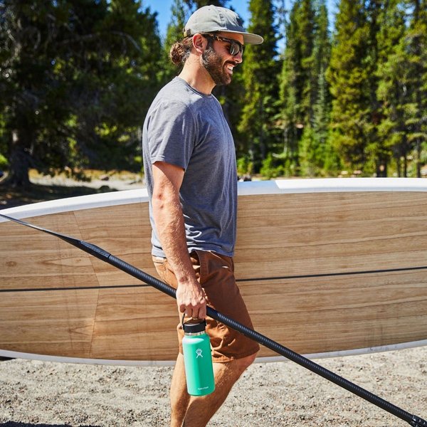 Butelka Wide Mouth to model marki Hydro Flask, który cechuje się optymalną pojemnością, co umożliwia komfortowe zabranie butelki w każdą podróż, bądź spacer po lesie.