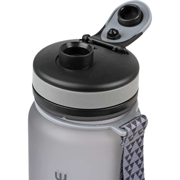 Cechująca się prostą konstrukcją butelka jest lekka oaz bardzo wytrzymała. Zastosowane do jej stworzenia wysokojakościowe materiały są trwałe i nie przesiąkają smakiem i zapachem napojów. Doczepiona pętelka sprawia, że transport jest bezpieczniejszy. Szczelny model został ozdobiony logo marki. Idealnie sprawdzi się podczas treningu.