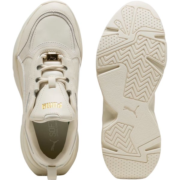 Buty Cassia Lux Puma to idealne połączenie stylu i komfortu, które zaspokoi potrzeby każdej aktywnej kobiety. Wykonane z wysokiej jakości materiałów, łączą syntetyczną i naturalną skórę, co gwarantuje trwałość i elegancję. Dzięki technologii SoftFoam+ dopasowują się do kształtu stopy, oferując niezrównaną wygodę nawet podczas długotrwałego użytkowania. Klasyczne sznurowanie i niski profil zapewniają stylowy wygląd, a gruba podeszwa z wyraźnym wzorem gwarantuje doskonałą przyczepność. Wzmocniony zapiętek i usztywniony nosek zwiększają stabilność, natomiast perforacje i wstawki z różnych materiałów dodają unikalności. Logo na języku i pięcie podkreśla markową jakość.