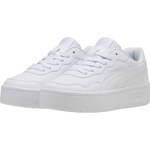 Buty lifestyle Puma Court Lally Skye dla kobiet łączą styl i wygodę, idealnie urozmaicając każdą garderobę. Dzięki eleganckiej, niskoprofilowej sylwetce, te buty sprawdzą się na każdą okazję. Wykorzystanie materiałów z recyklingu w cholewce i podeszwie podkreśla ekologiczne podejście marki, dbając o środowisko. Komfort noszenia przez cały dzień zapewnia wkładka Softfoam+, doskonała dla osób ceniących sobie amortyzację i wygodę. Stylowe przeszycia, perforacje na przodzie oraz charakterystyczne logo marki dodają wyjątkowego charakteru. Podwyższona gumowa podeszwa i usztywniony zapiętek oferują dodatkowe wsparcie i stabilność.