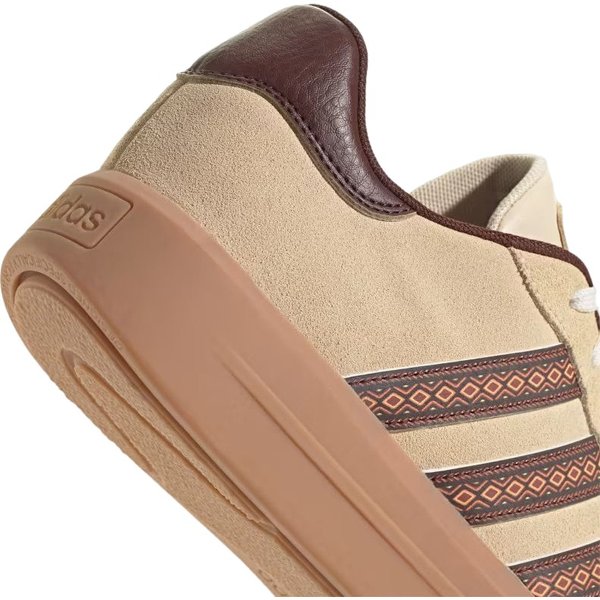 Buty lifestyle damskie Adidas to idealne połączenie stylu i komfortu, które wzbogacą każdą miejską stylizację. Wyjątkowa konstrukcja z elegancką, skórzaną cholewką oraz kolorowymi akcentami inspirowanymi brazylijskimi motywami, przyciąga spojrzenia, dodając retro charakteru. Wnętrze z miękką, tekstylną wyściółką gwarantuje wygodę, delikatnie otulając stopę, podczas gdy solidna gumowa podeszwa zapewnia niezrównaną przyczepność na różnych nawierzchniach. Unikalne wzornictwo trzech pasków Farm Rio oraz okrągły nosek, podkreślają ich wyjątkowy styl. Zastosowanie materiałów z recyklingu świadczy o trosce o środowisko.