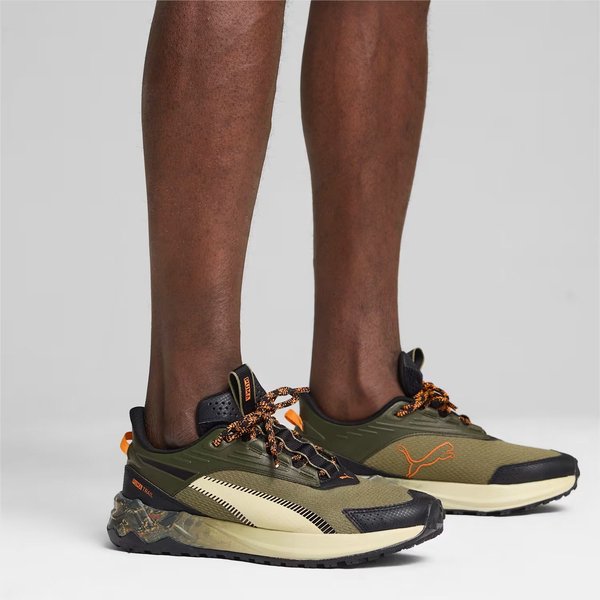 Buty Extend Lite Trail Landslide Puma to idealny wybór dla mężczyzn poszukujących komfortu i niezawodności podczas biegów terenowych. Ich lekka konstrukcja i siateczkowa cholewka zapewniają doskonałą wentylację, co zwiększa komfort podczas długotrwałego użytkowania. Wzmocnienia na palcach i pięcie chronią stopę, a bieżnik na podeszwie gwarantuje stabilność na zróżnicowanym podłożu. Amortyzowana podeszwa środkowa absorbuje wstrząsy, zmniejszając ryzyko kontuzji. Sznurowanie oraz pętelki ułatwiają zakładanie i dopasowanie. Elementy odblaskowe zwiększają widoczność po zmroku. Stylowy wzór kamuflażu i charakterystyczne logo Puma dodają nowoczesnego wyglądu.