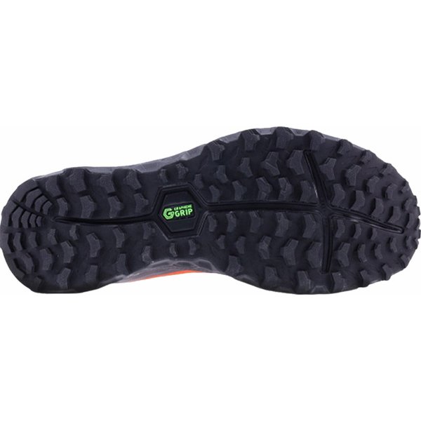 Dzięki zastosowaniu grafenu, najmocniejszego materiału na świecie, te buty zapewniają niezrównaną wydajność i trwałość bez kompromisów. Gumowa podeszwa zewnętrzna G-Grip z 98 blokami o długości 4 mm zapewnia doskonałą przyczepność zarówno na szlaku, jak i na drodze. Podeszwa środkowa z pianki G-Fly, w połączeniu z podwyższonym spadkiem o 8 mm, zapewnia 25% większy zwrot energii, co sprawia, że kroki są szybsze i bardziej komfortowe. Lekka i oddychająca cholewka z siateczki zwiększa komfort użytkowania, a super sprężysta wkładka Boomerang dodatkowo amortyzuje i zapewnia sprężystość.