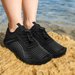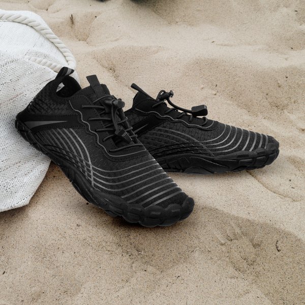 - Pewna przyczepność w wodzie i na lądzie: Wielostrefowy bieżnik z elastycznej gumy poprawia trakcję na mokrych skałach, piasku i płytkach basenowych, zmniejszając ryzyko poślizgu.