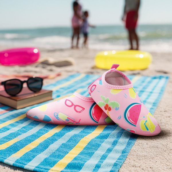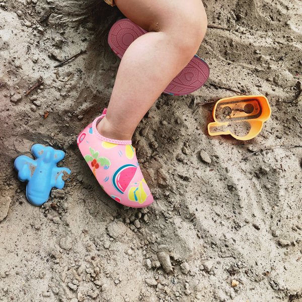 Buty chronią stopy dziecka przed ostrymi kamieniami, gorącym piaskiem czy śliskimi nawierzchniami, zapewniając ochronę podczas wakacyjnych aktywności. Dzięki odpowiednio zaprojektowanej podeszwie i zabudowanej konstrukcji użytkownik może swobodnie bawić się zarówno w wodzie, jak i na suchym podłożu.