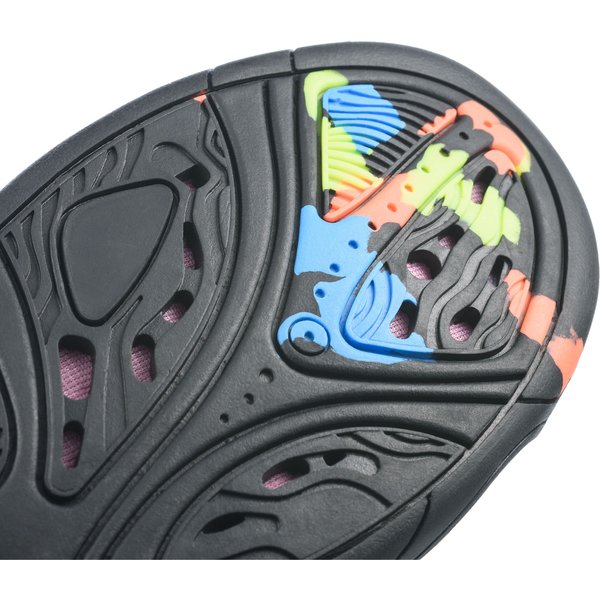 Gumowa podeszwa z wielokierunkowym bieżnikiem skutecznie chroni stopę przed ostrymi kamieniami, muszlami czy gorącym piaskiem. Jej struktura została zaprojektowana z myślą o przyczepności na mokrej nawierzchni, co zwiększa stabilność podczas poruszania się po śliskim podłożu.