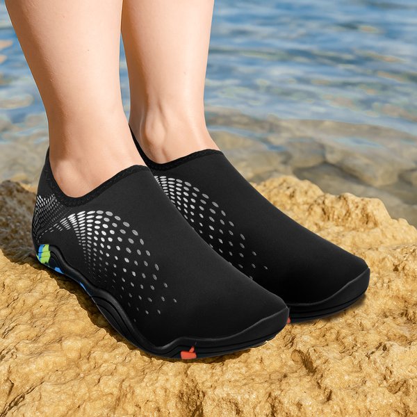 Buty wykonane z lekkich, szybkoschnących materiałów oferują komfort zarówno podczas pływania, jak i spacerów po plaży. Oddychająca konstrukcja wspomaga odprowadzanie wilgoci i zapobiega przegrzewaniu stóp w ciepłych warunkach.