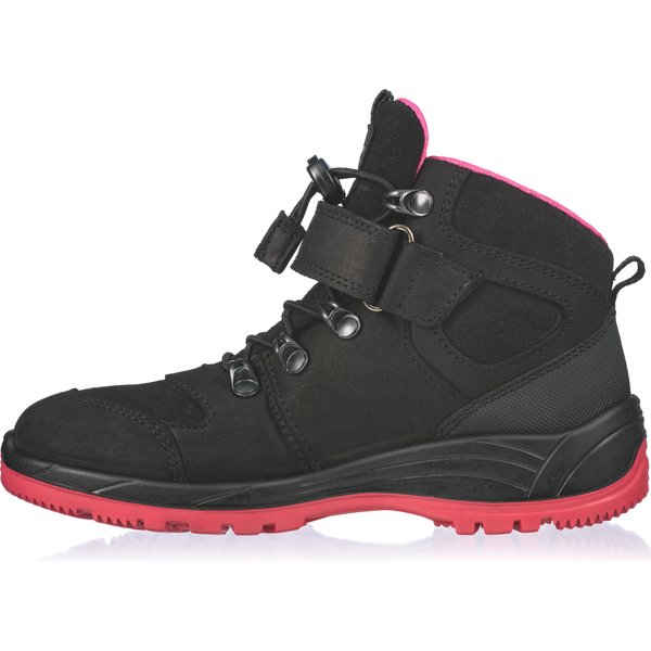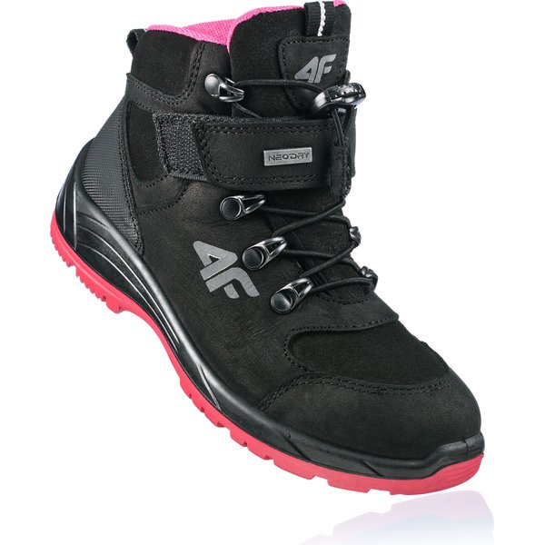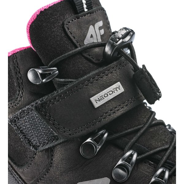 Ten model został wykonany został z wysokiej jakości skóry naturalnej, dlatego pasuje nie tylko do sportowych stylizacji. Cholewka jest wspierana przez wodoodporną membranę Neo-dry, która posiada najwyższy standard oddychalności, zapobiega wchłanianiu wody, a zgromadzony wewnątrz pot skutecznie odprowadza z dala od skóry. System szybkiego sznurowania ułatwia precyzyjne dopasowanie butów do kształtu stopy dziecka. Wysoki profil zabezpiecza staw skokowy przed bolesnymi urazami. Bieżnik z TPU charakteryzuję się wysoką odpornością na uszkodzenia mechaniczne oraz bardzo dobrą przyczepnością nawet na mokrej nawierzchni.