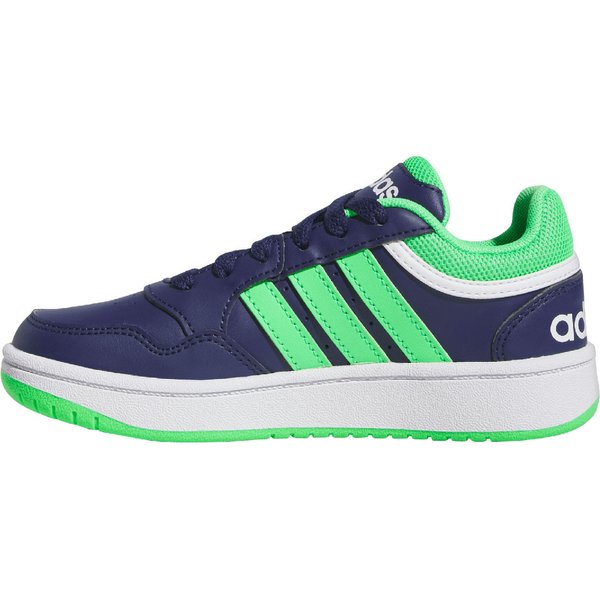 Buty Hoops 3.0 K Jr Adidas to idealne obuwie dla małych fanów stylu tenisowego. Dzięki cholewce ze skóry syntetycznej zapewniają lekkość i swobodę ruchów, a jednocześnie stabilność i wsparcie. Niski profil oraz płaska podeszwa sprawiają, że buty są wygodne i stabilne. Sznurowany design oraz perforacja na przodzie dodają im stylowego wyglądu. Dodatkowe wzmocnienie na pięcie zapewnia jeszcze większą trwałość. Amortyzowana podeszwa środkowa oraz gumowa konstrukcja podeszwy zapewniają komfort i pewność kroków. Buty Hoops 3.0 K Jr Adidas to połączenie stylu tenisowego z codziennym komfortem dla najmłodszych.