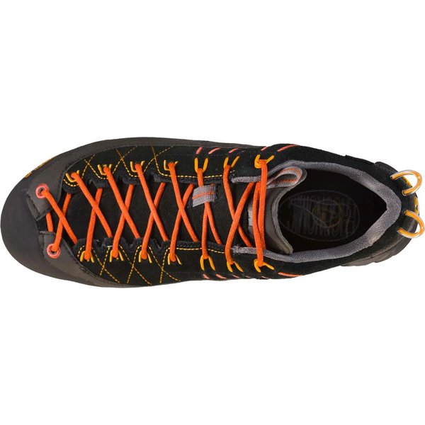 Model Hyper GTX od marki La Sportiva został wyposażony w podszewkę GORE-TEX, która gwarantuje lekkie, wodoodporne i oddychające wykończenie, również dzięki siateczkowej cholewce. Precyzyjne, ergonomiczne dopasowanie uzyskuje się za pomocą wszechstronnego systemu sznurowania za pomocą serii obręczy i wzmocnień o wysokiej częstotliwości. Tą metodę konstrukcji marka La Sportiva zaprojektowała z myślą o potrzebach osób, które nie wyobrażają sobie życia bez pieszych wędrówek. Ochronny, gumowy nosek to również odpowiedź na potrzeby miłośników wspinaczki. Dzięki niemu, takie najbardziej narażone na ścieranie miejsca jak czubek nosa, są zabezpieczone. Klin podeszwy środkowej „Rock Guard” zawiera warstwę EVA z wstrzykiwaną poduszką amortyzującą na pięcie i zapewnia lepsze wsparcie kostki, aby uniknąć skręcania stopy. Podeszwa Idrogrip Vibram została stworzona zgodnie ze specyficznymi właściwościami i zawiera specjalne strefy, dostosowane do Twoich potrzeb, tak abyś zawsze czuł się w nich komfortowo.
