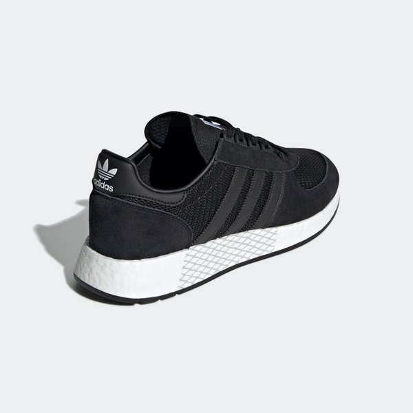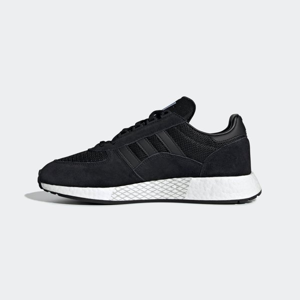 Marathon Tech czerpie z pierwszych modeli marki, jednak został ulepszony o najnowsze rozwiązania. Buty są niesamowicie lekkie, niemal niewyczuwalne na stopach. Cholewka z wstawkami z syntetycznego zamszu i tkaniny pozwala skórze oddychać i przez długi czas zachować komfortowe uczucie suchości i świeżości. Nieco profilowana, gumowa podeszwa zewnętrzna wspiera naturalny ruch i ułatwia marsz oraz bieg. Nawet długodystansowe maratony nie będą powodowały nadmiernego zmęczenia i dyskomfortu. Technologia Boost pochłania wstrząsy i amortyzuje, zapewniając przyjemne i komfortowe użytkowanie. Wyjątkowy bieżnik poprawia stabilność i przyczepność, dzięki czemu buty sprawdzą się zarówno na bieżni, jak i na zewnątrz. Standardowy krój to zawsze dobry wybór, podkreśli każdą sportową, luźną stylizację.
