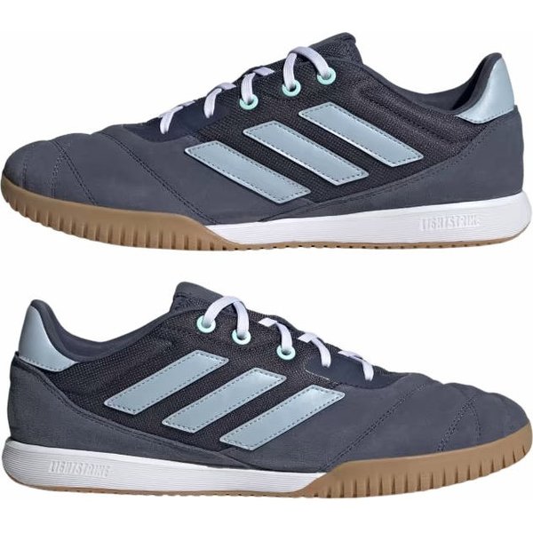 Buty piłkarskie adidas Copa Glorio IN Adidas to idealny wybór dla wszystkich miłośników piłki nożnej, którzy uwielbiają grać na hali. Te wygodne buty zapewniają maksymalny komfort i doskonałą kontrolę nad piłką podczas gry. Mają niski profil z gumową podeszwą, co zapewnia stabilność i ochronę stopy podczas dynamicznych ruchów. Wykonane z wysokiej jakości skóry i tkaniny, buty są trwałe, dopasowują się do stopy i zapewniają wentylację. Dodatkowo, mają elegancki design w granatowym kolorze, który doskonale komponuje się z innymi elementami stroju sportowego. Ciesz się komfortem, jakością i stylem podczas gry na hali.